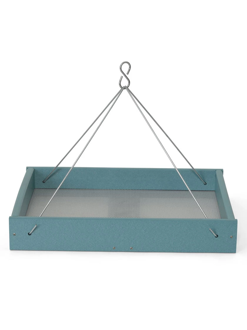 This attractive lake blue large hanging platform bird feeder from our Green Solutions line is a maintenance-free durable bird feeder constructed with recycled poly lumber material. It is easy to care for and easy to clean.