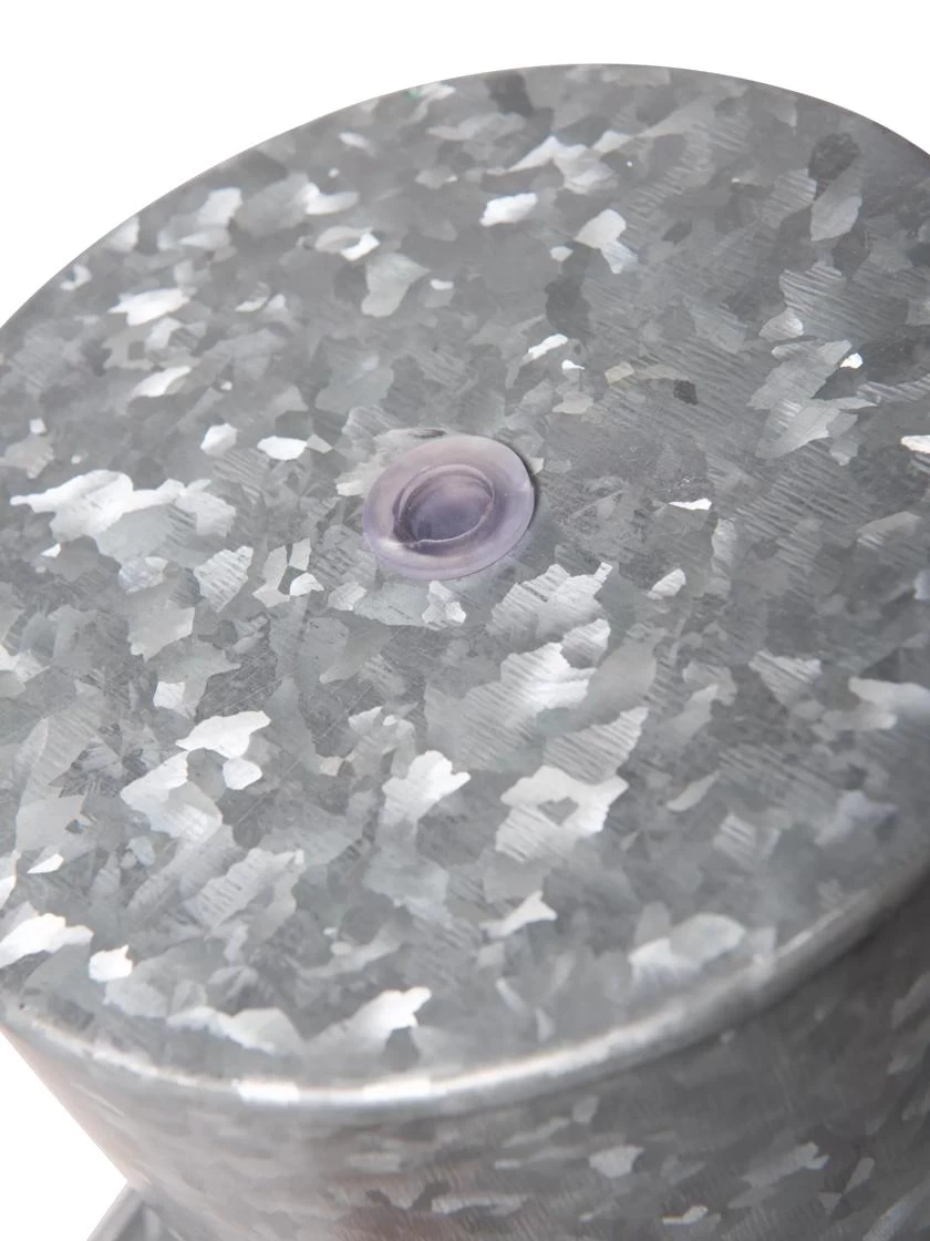 • Galvanized iron with drainage hole and plug